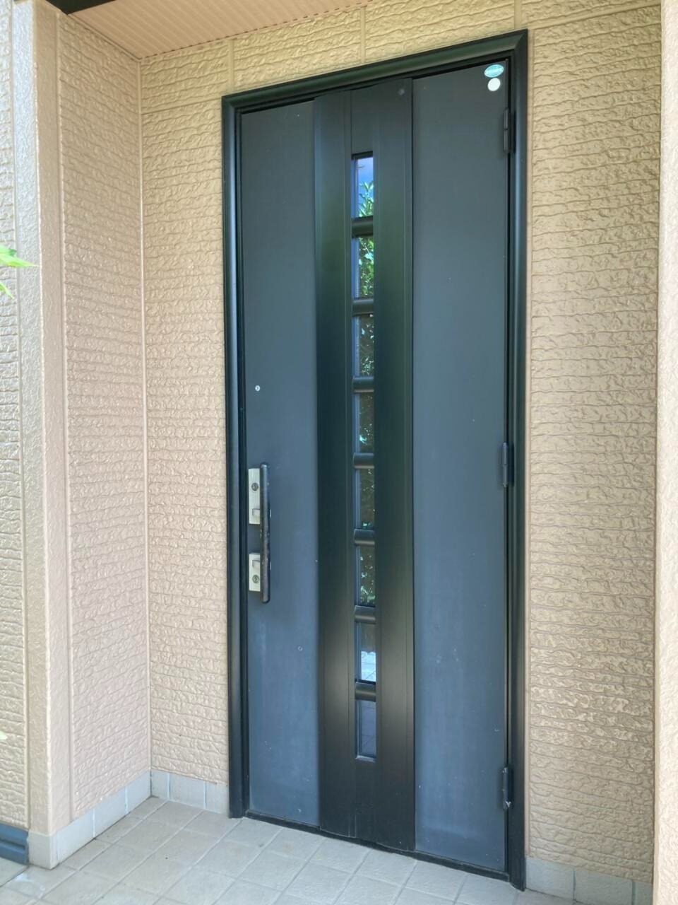 玄関ドアの「鍵が固くなってきた」「取手がボロボロになってきた」「汚れが落ちない」といったお悩みから、ドアの交換をご依頼いただきました。