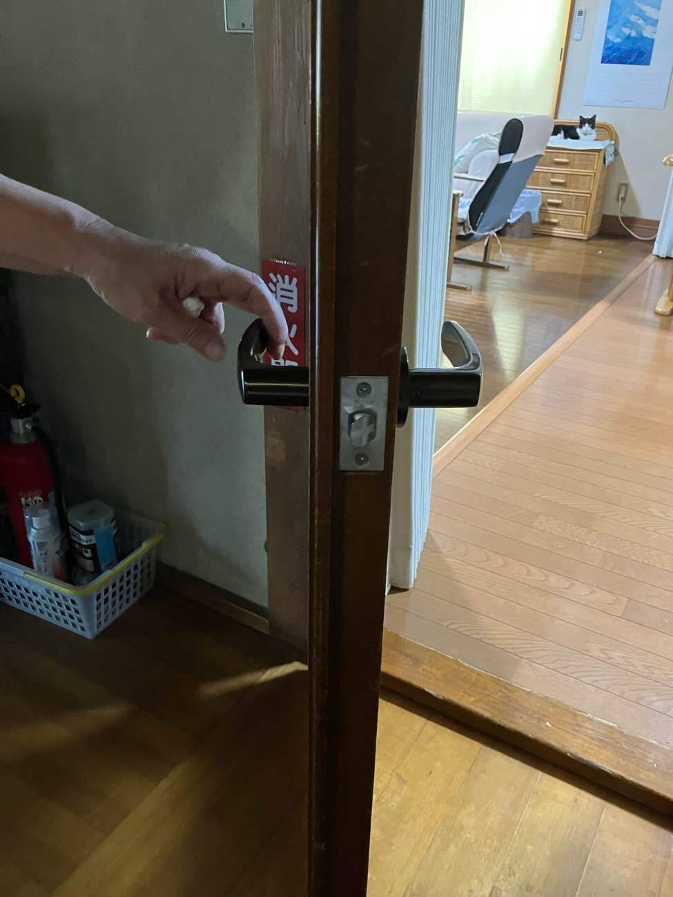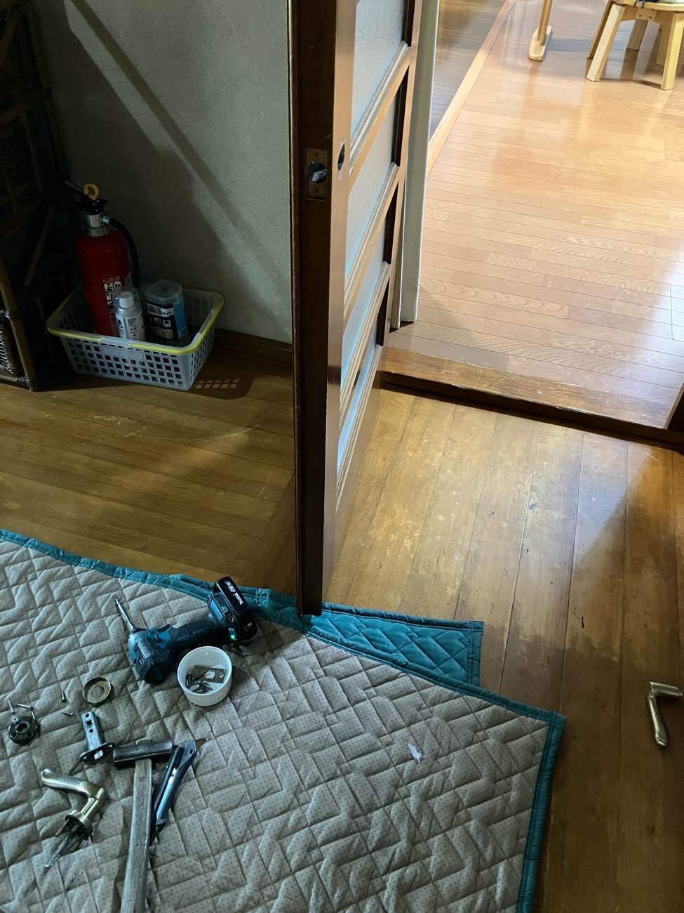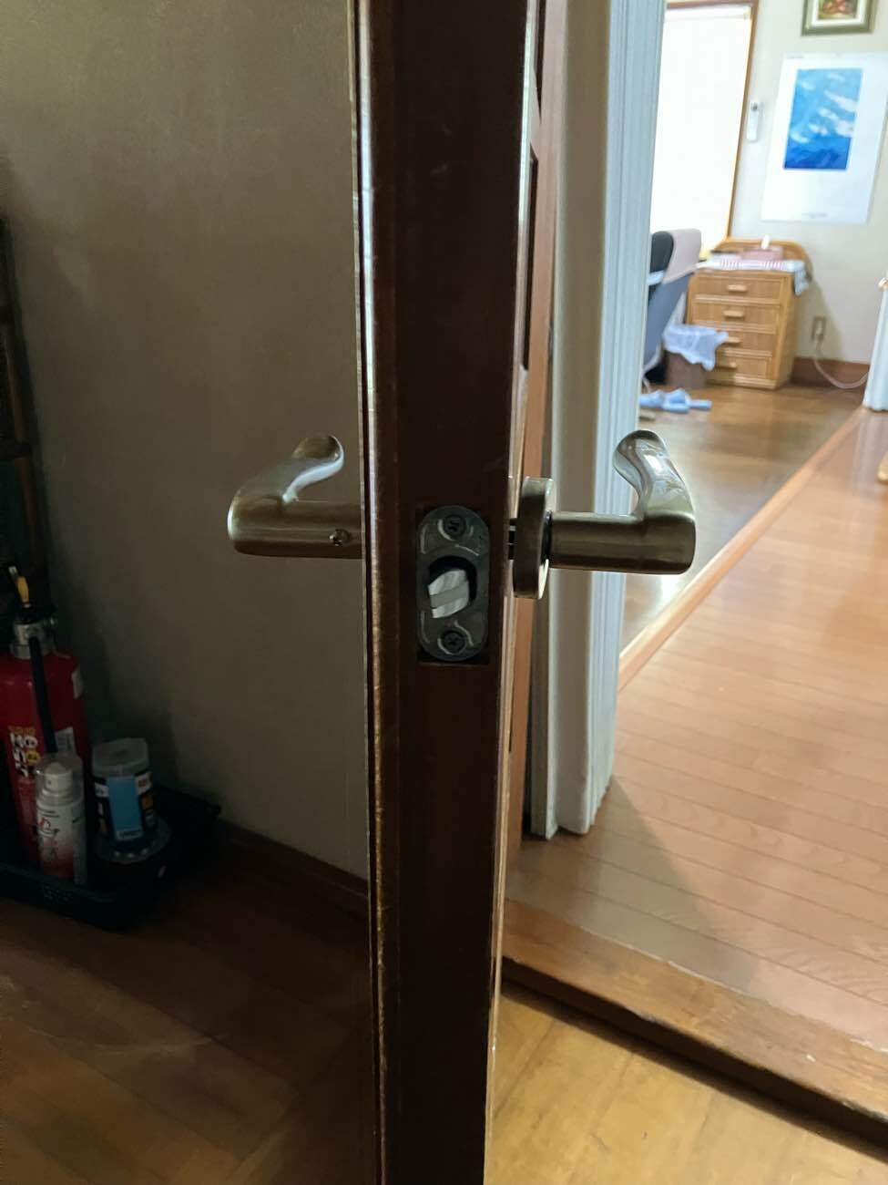 今回は、リビングドアのドアノブが外れかけており、ドアがしっかり閉まらない状態とのことで、ドアノブの交換を実施。