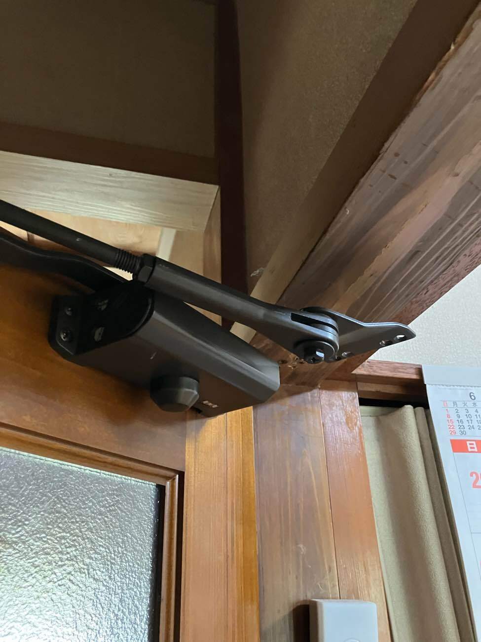 また、上部に取り付けられているドアクローザのネジが外れてしまっていたため、そちらも併せて補修いたしました。