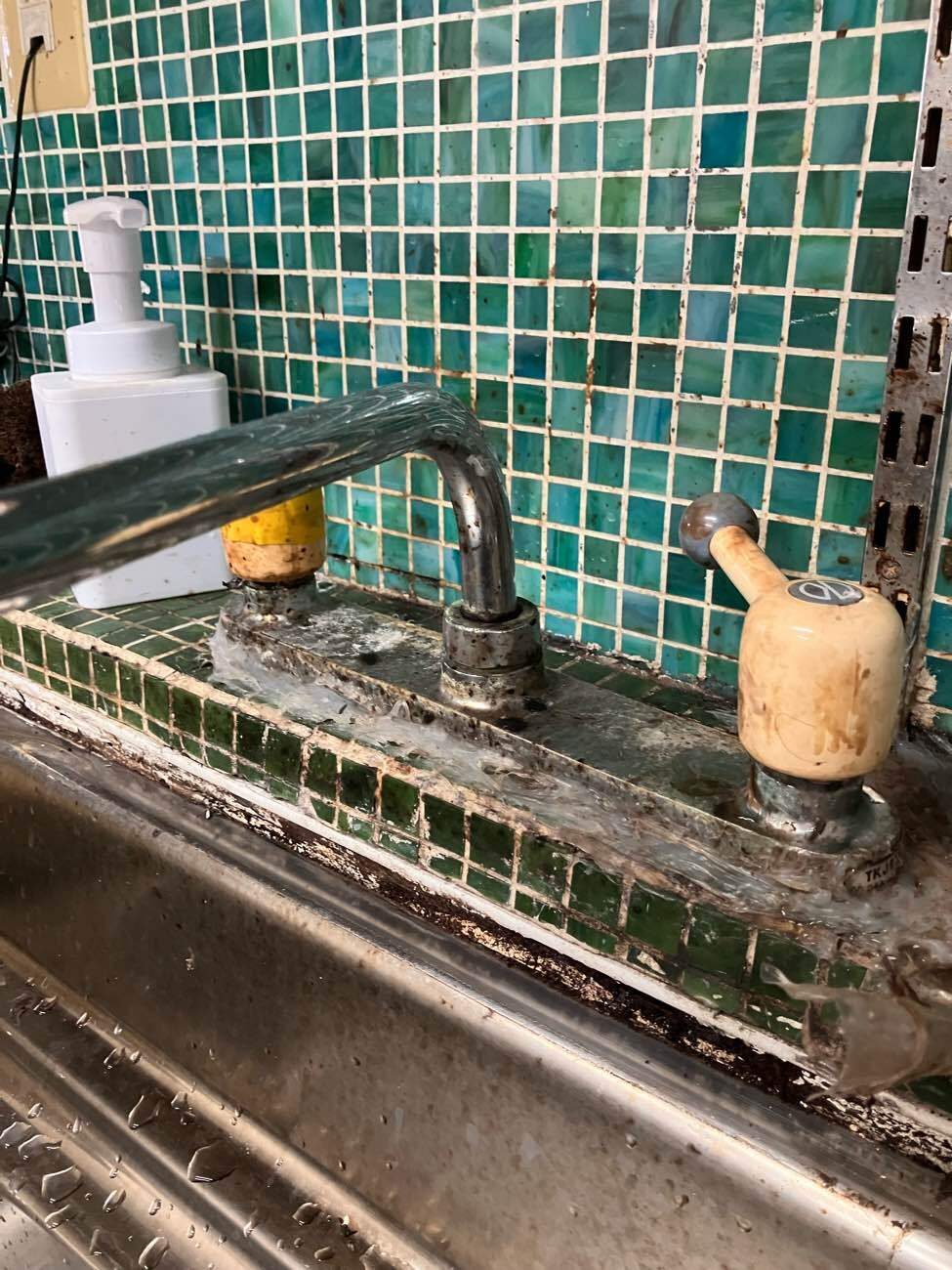 今回は、古くなった水栓と汚れが目立つ緑色のタイルをすべて一新したいとのご希望でした。