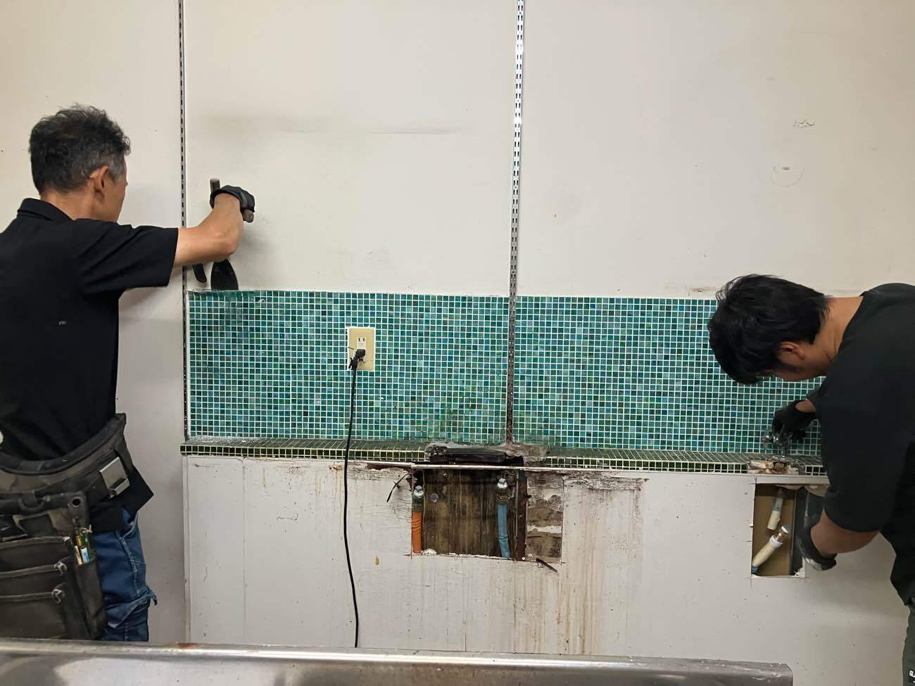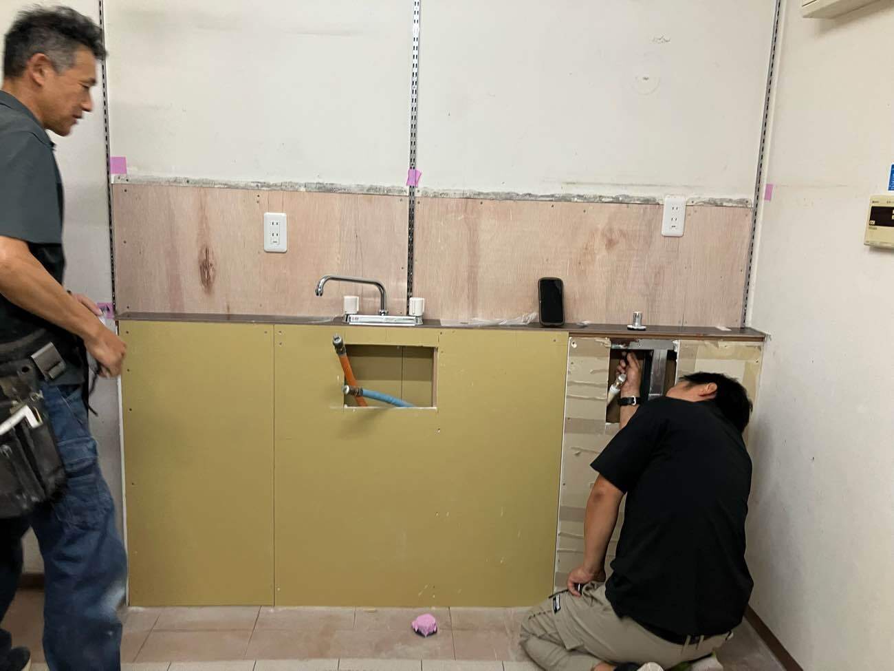 施工内容 | 一槽流し台、水栓交換、新規パネル設置 |