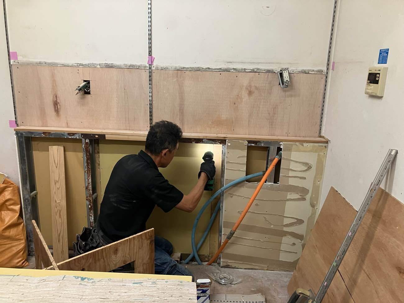 お客様とご相談の上、タイルの代わりにお手入れのしやすいパネル仕上げをご提案。