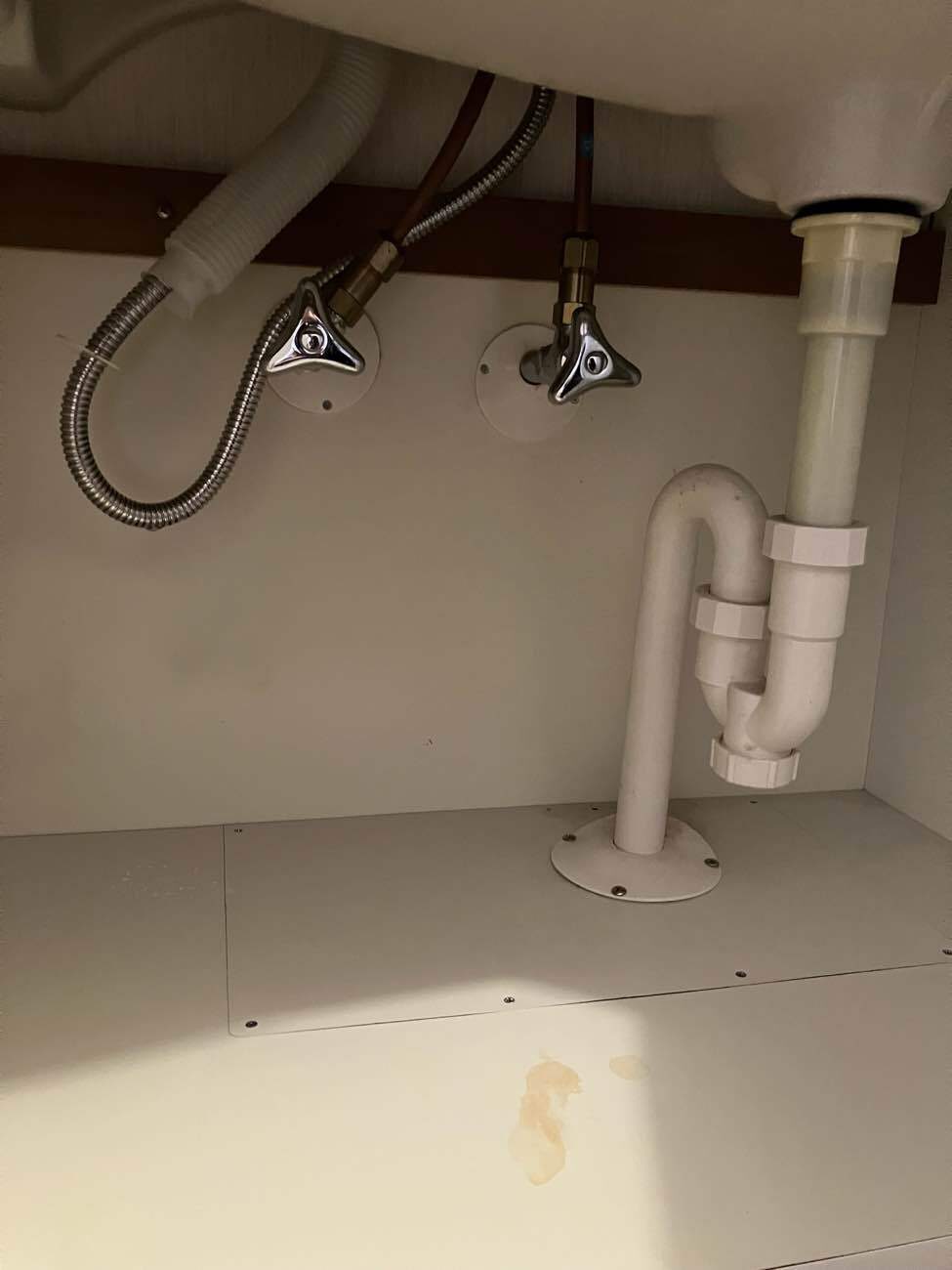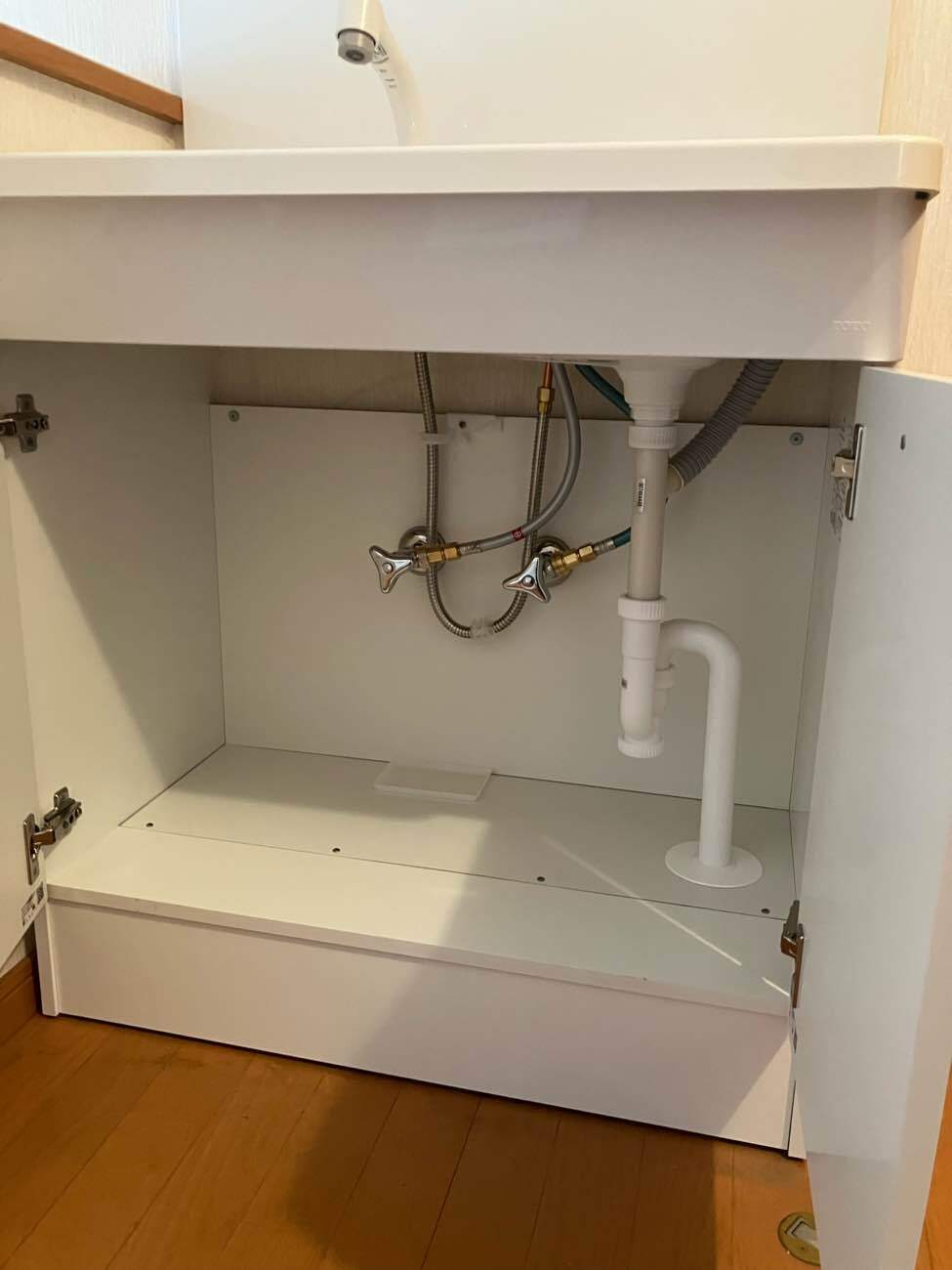 長年使用されてきた洗面台で、排水ホースからの水漏れが発生しており、使いづらさや老朽化も気になっていたとのこと。