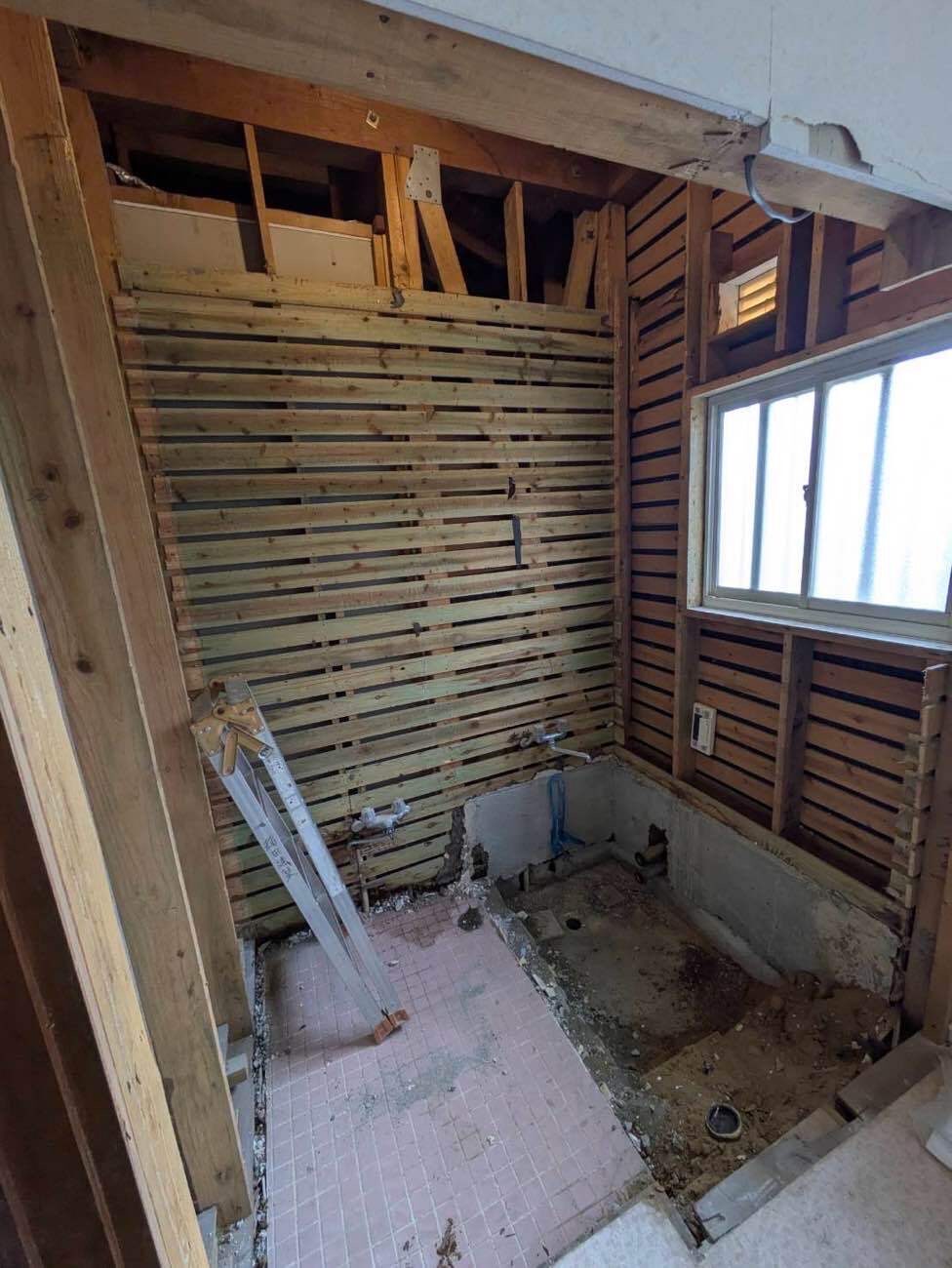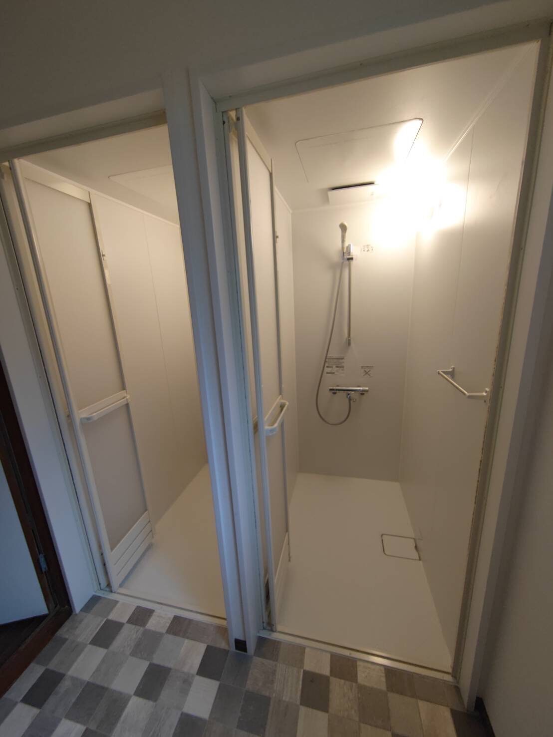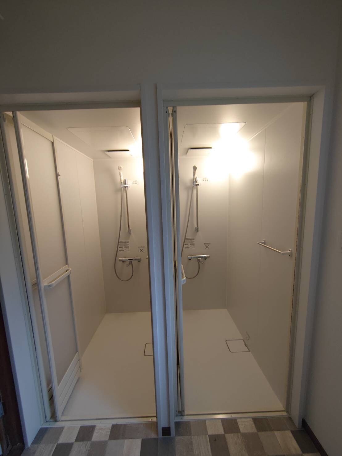 昔ながらの浴室と脱衣場を解体し、シャワー室2ヶ所と洗濯機置き場2ヶ所を新たに設置しました。