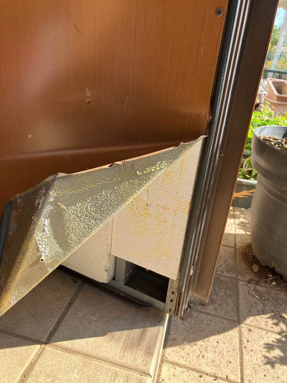 既存の玄関ドアが経年劣化により重くなり、開閉しづらい状態に。ご家族様が内側下部を調整して直そうとされたものの、かえって状況が悪化し、開け閉めができなくなってしまったことから、玄関ドアの交換をご依頼いただきました。