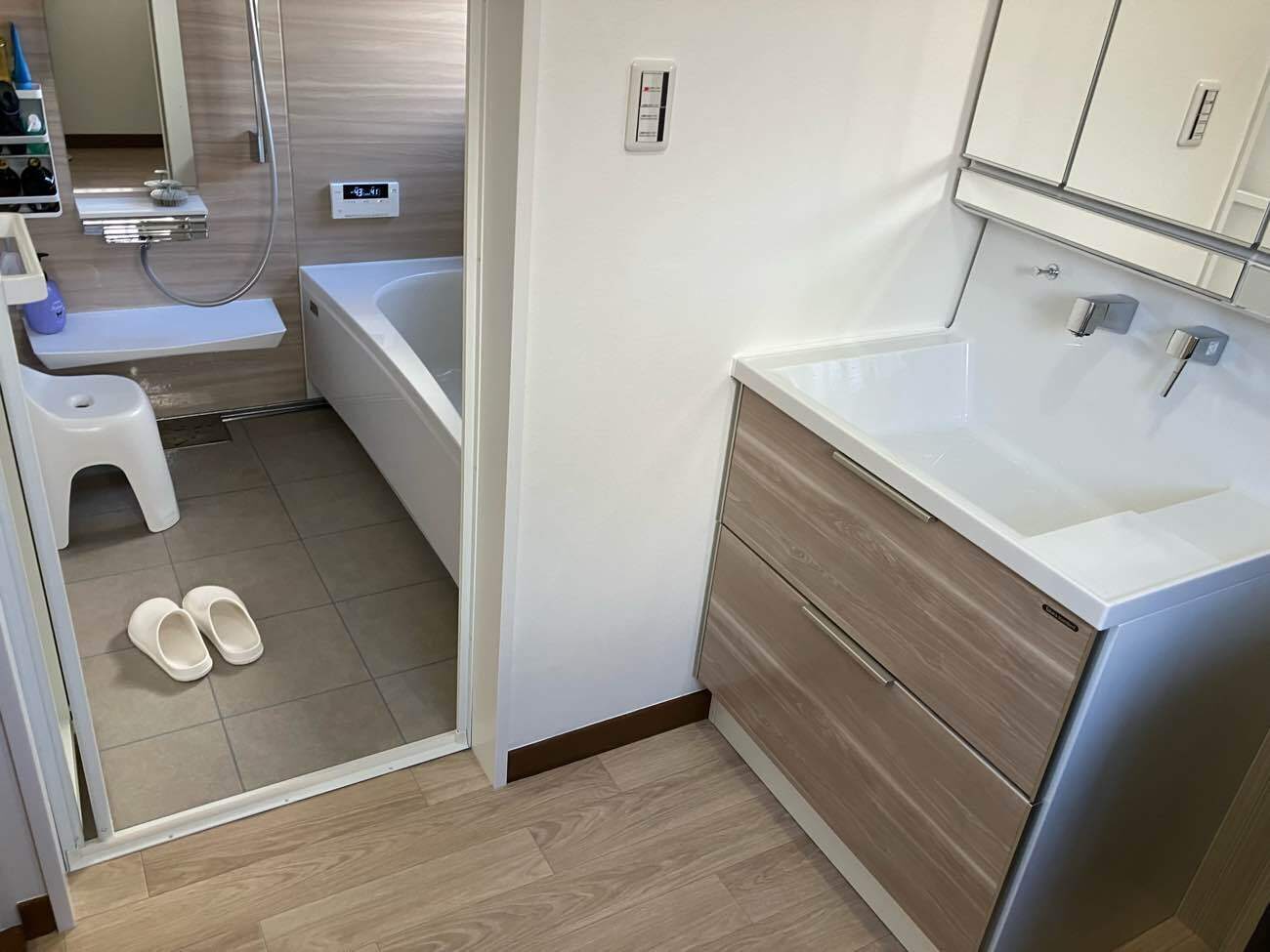 | 商品 | 浴槽商品:タカラスタンダード グランスパ1616 洗面化粧台商品:タカラスタンダード ファミーユ 幅750 脱衣場:天井、壁クロス 床:クッションフロア |