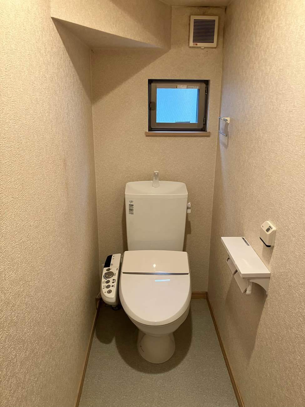 内装は明るく清潔感のあるサンゲツのクロスとクッションフロアで統一し、トイレ全体が美しく生まれ変わりました。さらに、脱衣場のクロスも同時に交換し、お家全体の快適性が向上しました。