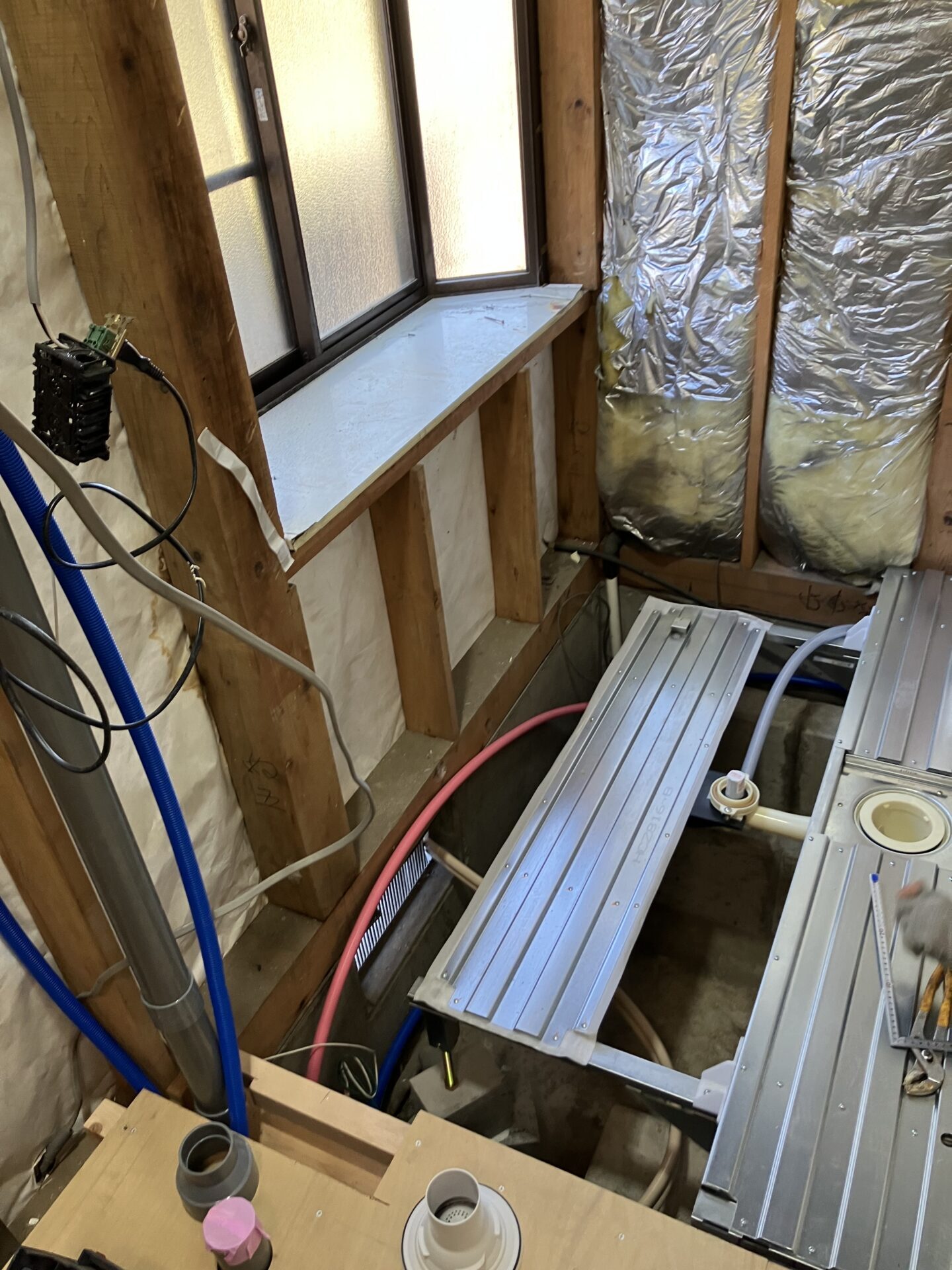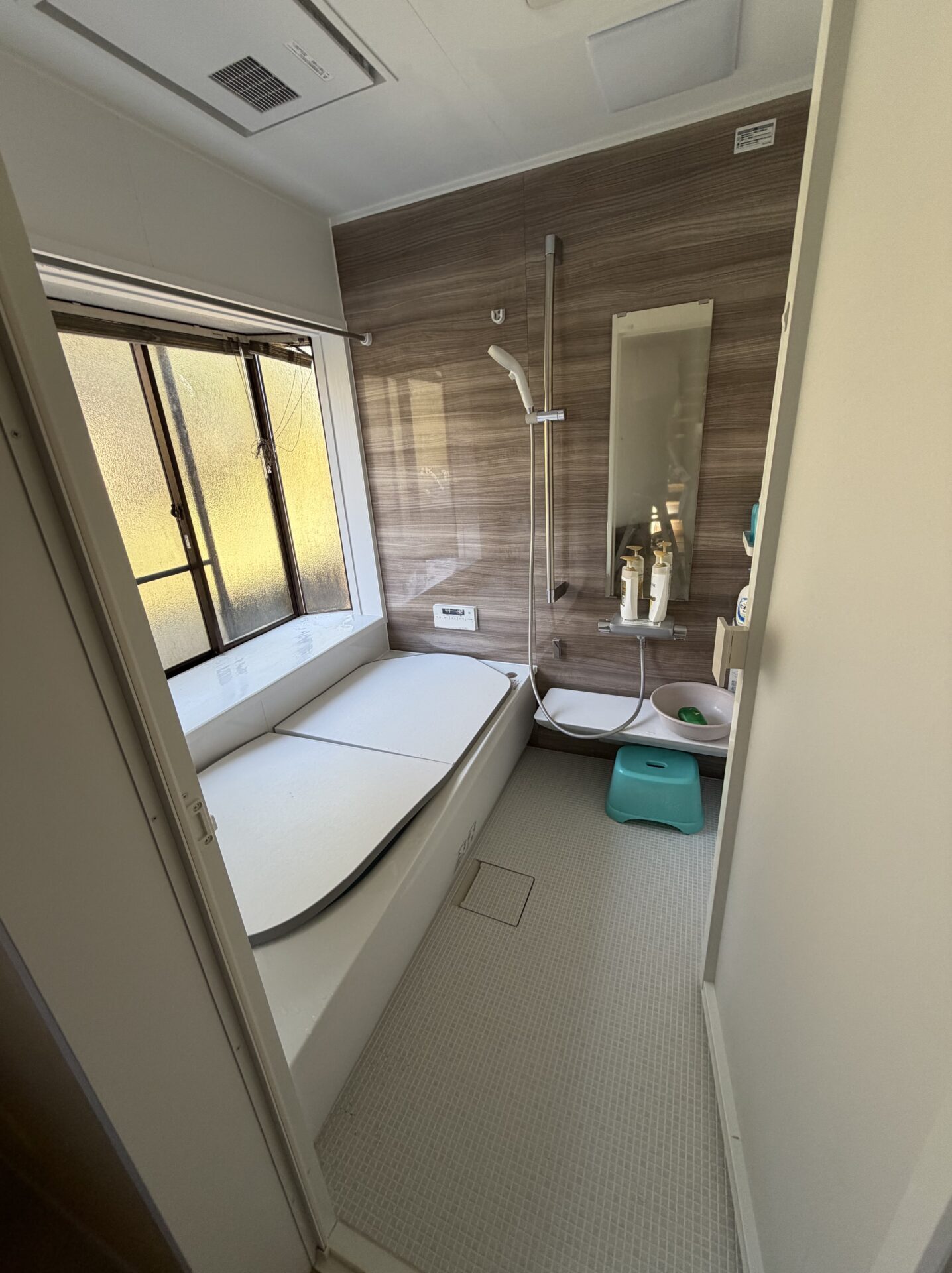 特に給湯器は追い炊き機能がなかったため、新規で追い炊き配管工事を実施。さらに、既存の浴室が広かったことから1坪サイズに変更し、その分脱衣場を広く使えるようレイアウトを見直しました。