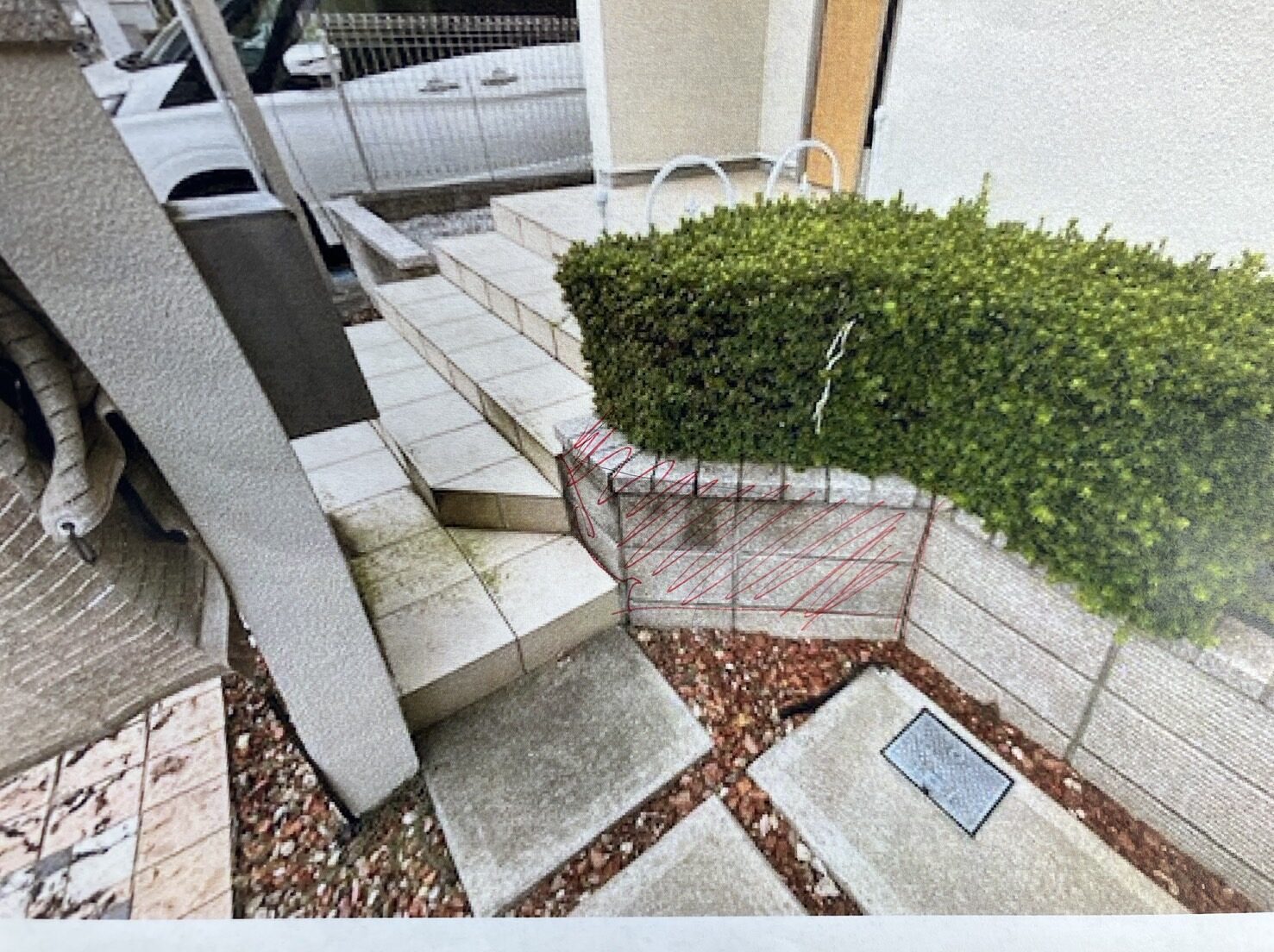 今回のご相談は、駐車場スペースを広げたいというご希望からスタートしました。お車の出し入れがしづらく、もう少しゆとりのある駐車スペースが欲しいとのことで、既存の門塀の解体とアプローチ部分の見直しをご提案させていただきました。