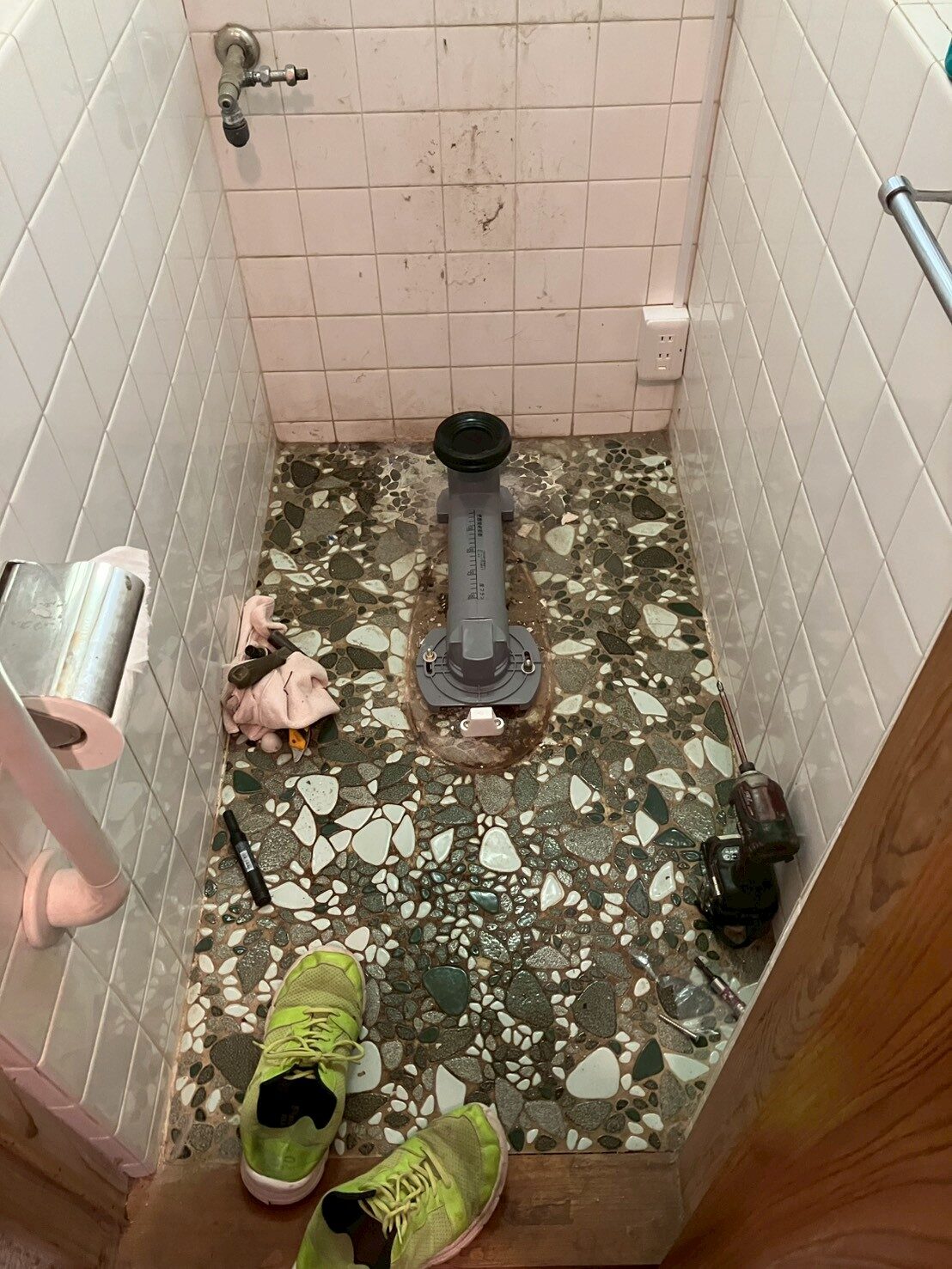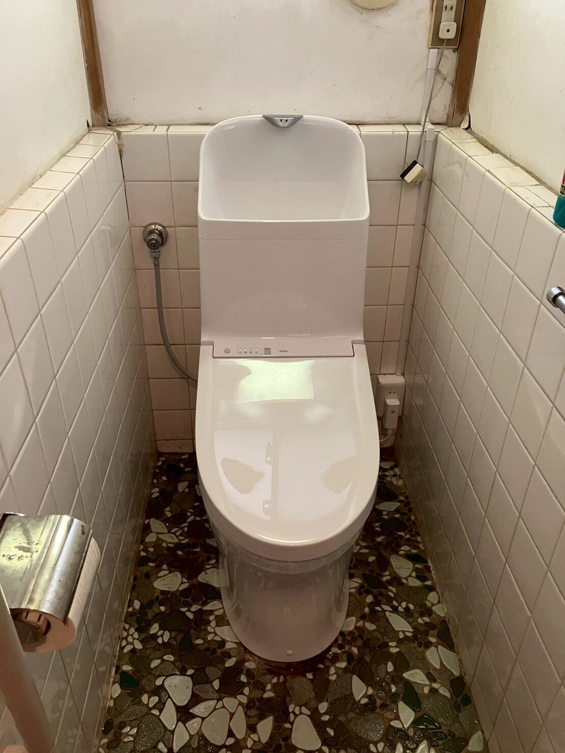 お母様が石調の床やタイルをとても気に入っていらっしゃるとのことで、今回はトイレのみの交換となりました。既存の床や壁はそのまま活かし、トイレ本体だけを新しくすることで、費用を抑えながらも快適で清潔な空間に生まれ変わりました。工事は無事に完了し、お客様にお引き渡しとなりました。