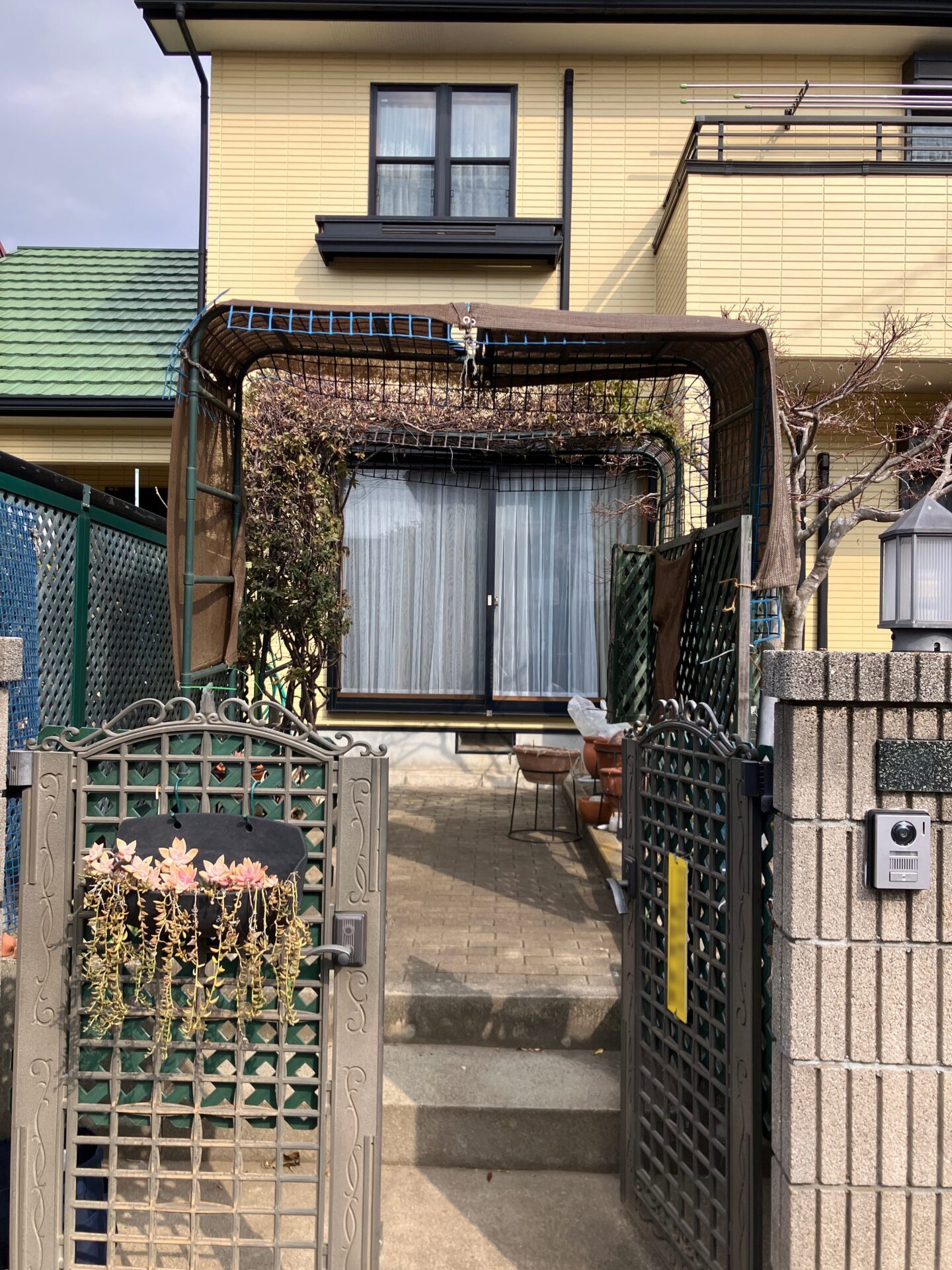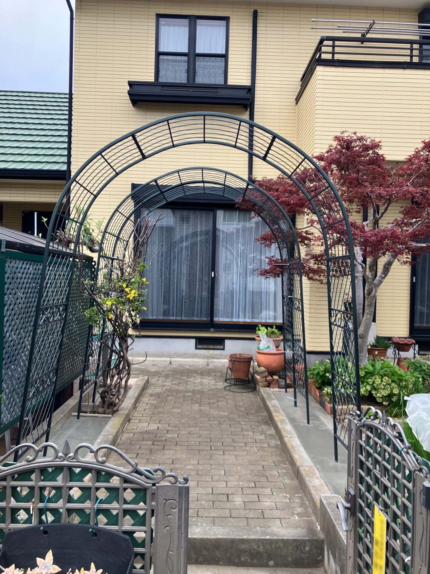 工事は2日間で完了いたしました。今後、お花が咲き誇る季節には、門から玄関まで続く美しいフラワートンネルが楽しめることと思います。